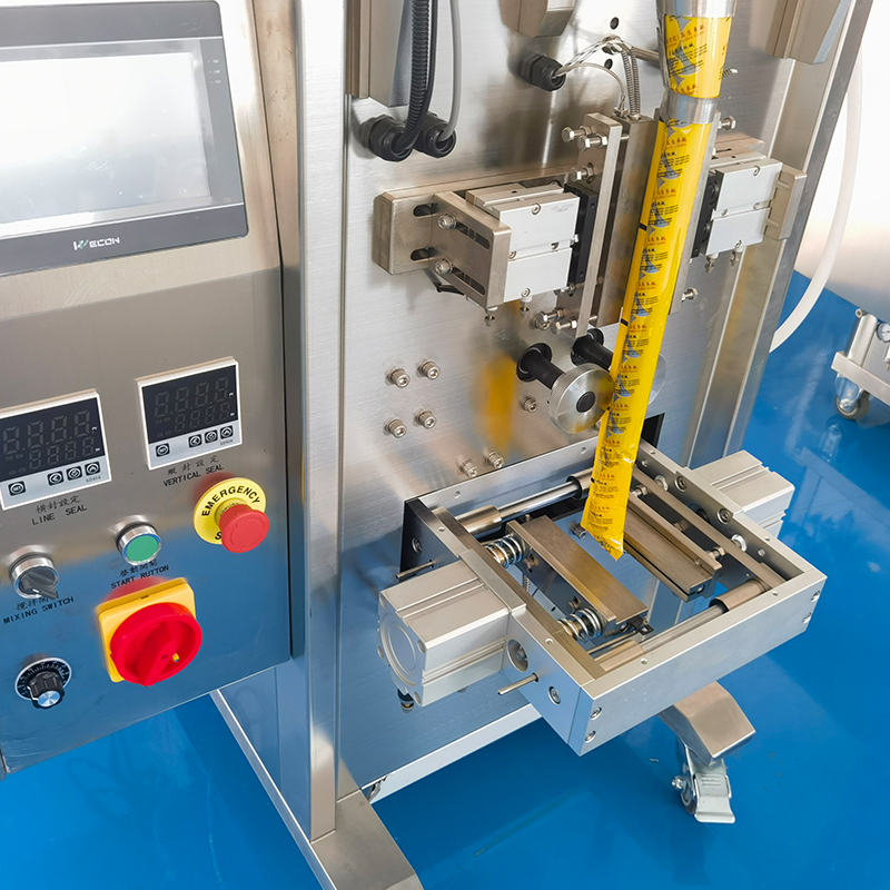 在食品、日化等行業內容,小劑量的液體物料包裝非常難以把握,立式液體包裝機因精準、高效、便捷的工作方式,能夠針對于:辣椒油、小袋油汁、牛奶、果汁、鮮奶等流動性強的液體物料包裝,立式液體包裝機集多項功能于一體化的設計,為企業提供了可靠的生產方案,經過軟件的配合,小袋油汁包裝機能夠完成5-8人的工作量。