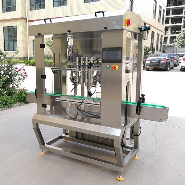 全自動(dòng)辣椒醬灌裝機(jī)設(shè)備由全自動(dòng)4頭辣椒醬灌裝機(jī)和高速辣椒醬真空旋蓋機(jī)組成,是我司新款的4頭辣椒醬生產(chǎn)線(xiàn),設(shè)計(jì)新穎、外形美觀,具有界面友好,適應(yīng)性強(qiáng)、操作簡(jiǎn)單、灌裝量準(zhǔn)確,維護(hù)方便等特點(diǎn)。設(shè)備表面和物料按觸面均采用304不銹鋼材料制造,無(wú)滴漏,無(wú)拉絲,易清洗,完全符合食品行業(yè)標(biāo)準(zhǔn)要求。辣椒醬灌裝機(jī)設(shè)備表面和物料按觸面均采用304不銹鋼材料制造,無(wú)滴漏,無(wú)拉絲,易清洗,完全符合食品行業(yè)標(biāo)準(zhǔn)要求。 該芝麻醬生產(chǎn)線(xiàn)經(jīng)過(guò)多加知名企業(yè)使用,反饋良好,六必居芝麻醬、海底撈火鍋底料、老干爹辣椒醬、仲景香菇醬等,本地采用DLP觸摸屏控制,可實(shí)現(xiàn)人機(jī)對(duì)話(huà)操作。 適用于不同規(guī)格容器的灌裝,可在數(shù)分鐘內(nèi)切換灌裝規(guī)格。無(wú)需增添備件,只需作調(diào)整即可完成。